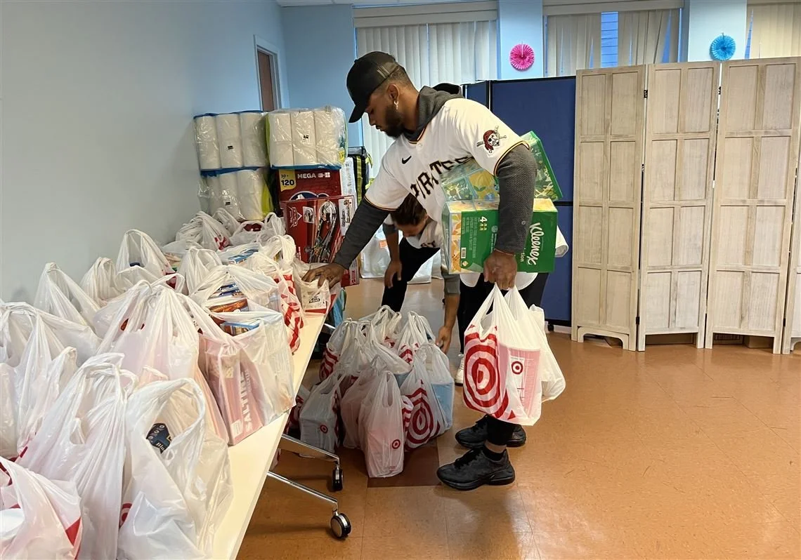 As six Pirates players stood together in the middle of the Latino Community Center in Friendship on Friday morning, Endy Rodriguez turned to Liover Peguero and teased his fellow rookie by flipping the hat off his head.