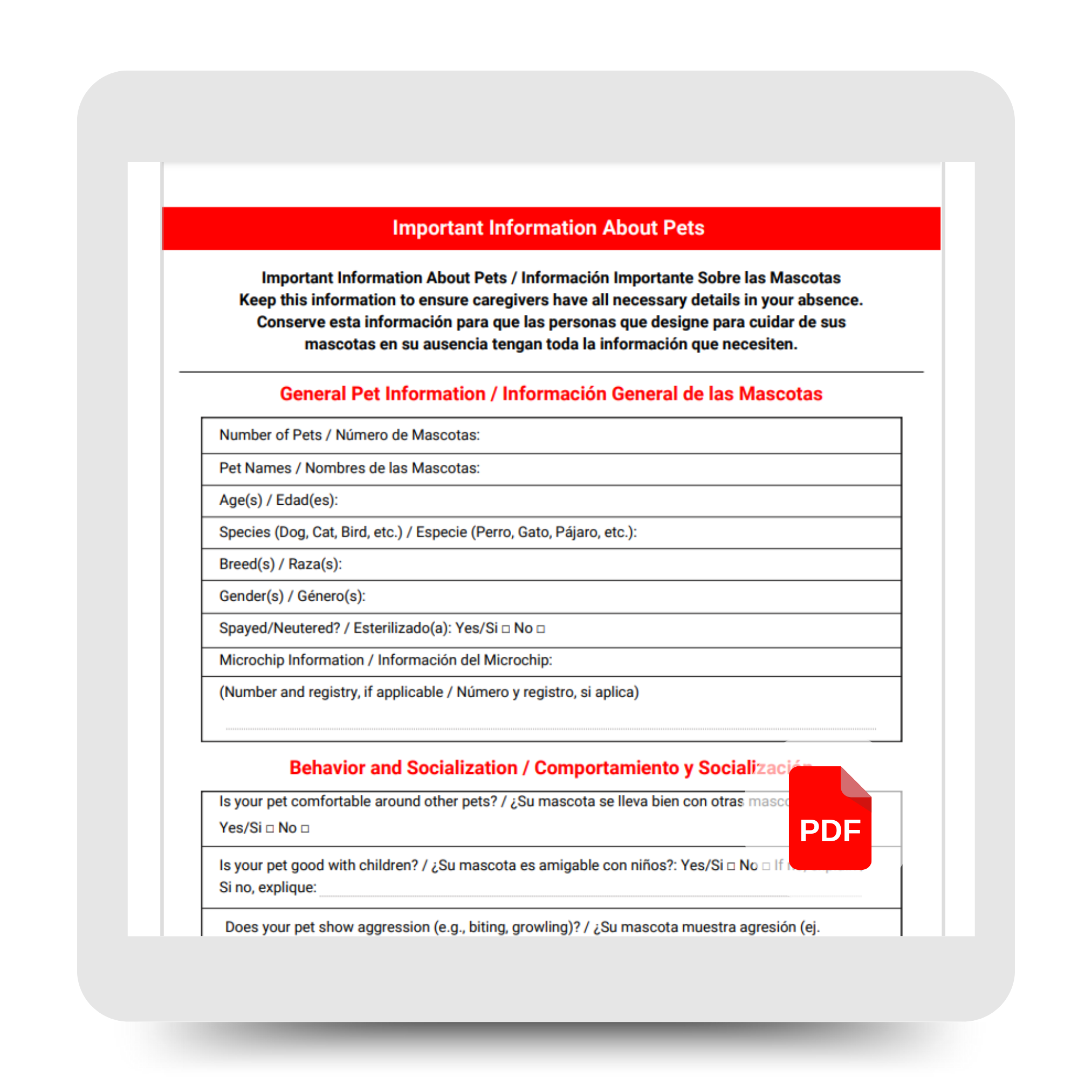 This form will ensure that caregivers have all the details necessary to care for your pets in your absence. This form was created by the Latino Community Center, however it is not branded so any organization or individual who needs it can use it.